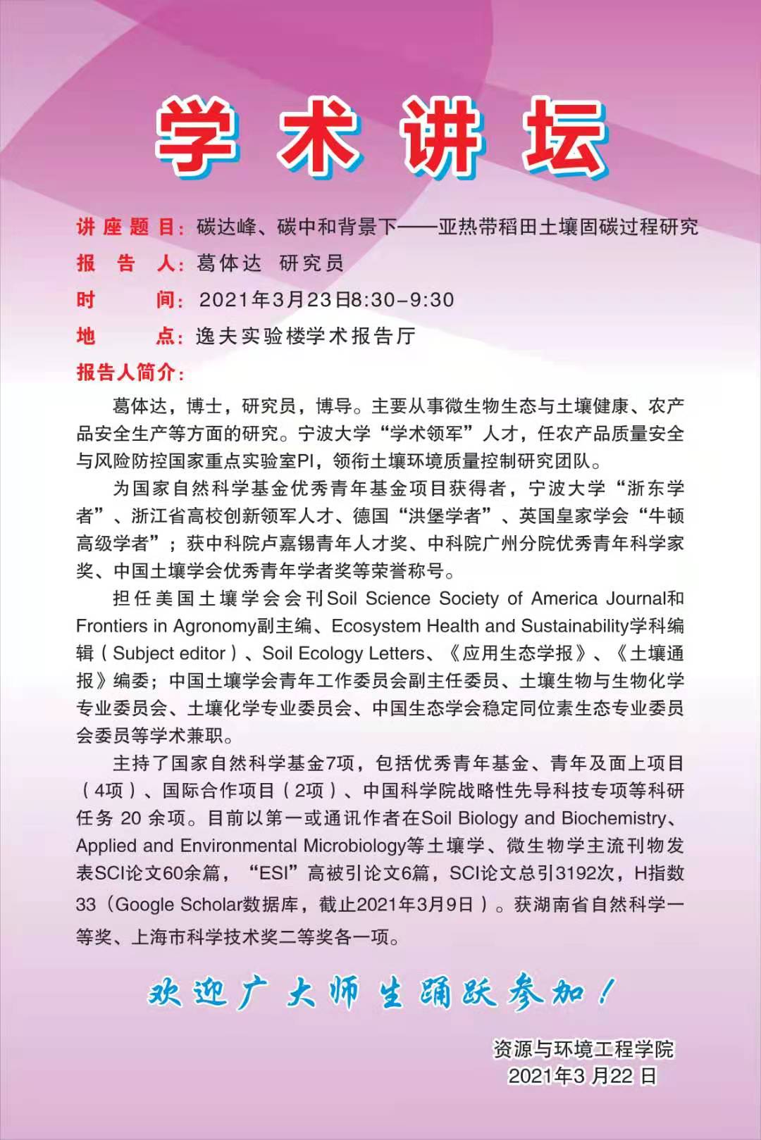 【学术讲座】亚热带稻田土壤固碳过程研究